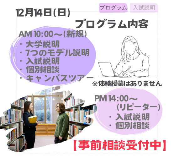 【つくば】ミニオープンキャンパス/事前相談 12月14日(日)